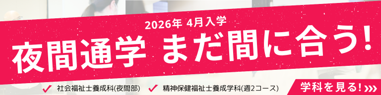 お仕事や学校帰りでも参加しやすい夜間開催の説明会です。学科や授業の内容に加え、個別相談の時間もご用意しています。
