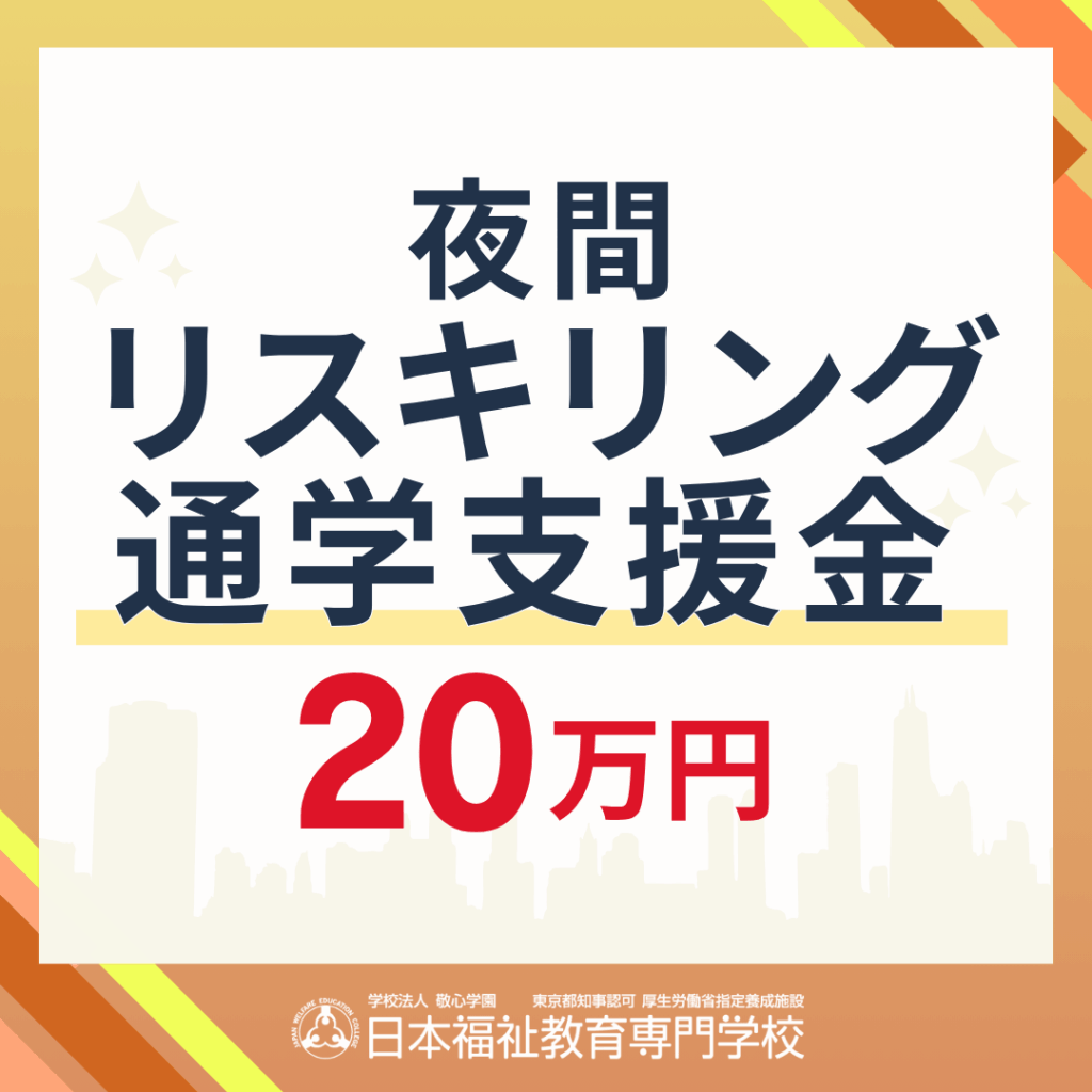 夜間の時間帯で学ぶ学生を対象に、学費から20万円を減免する制度です。