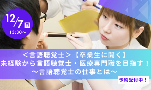 「言語聴覚士」は異業種からの未経者がキャリアチェンジして活躍できる医療専門職です。医療職への転身にご興味がある方はぜひご参加ください。