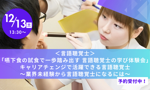 「言語聴覚士」は異業種からの未経者がキャリアチェンジして活躍できる医療専門職です。医療職への転身にご興味があるかたはぜひご参加ください。