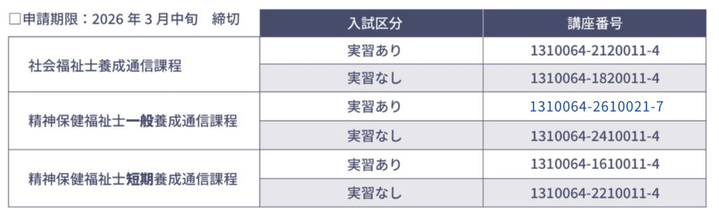 精神保健福祉士一般養成通信課程(実習あり)の指定番号が発行されました。