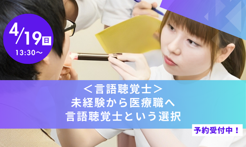 「言語聴覚士」は異業種からの未経者がキャリアチェンジして活躍できる医療専門職です。医療職への転身にご興味があるかたはぜひご参加ください。