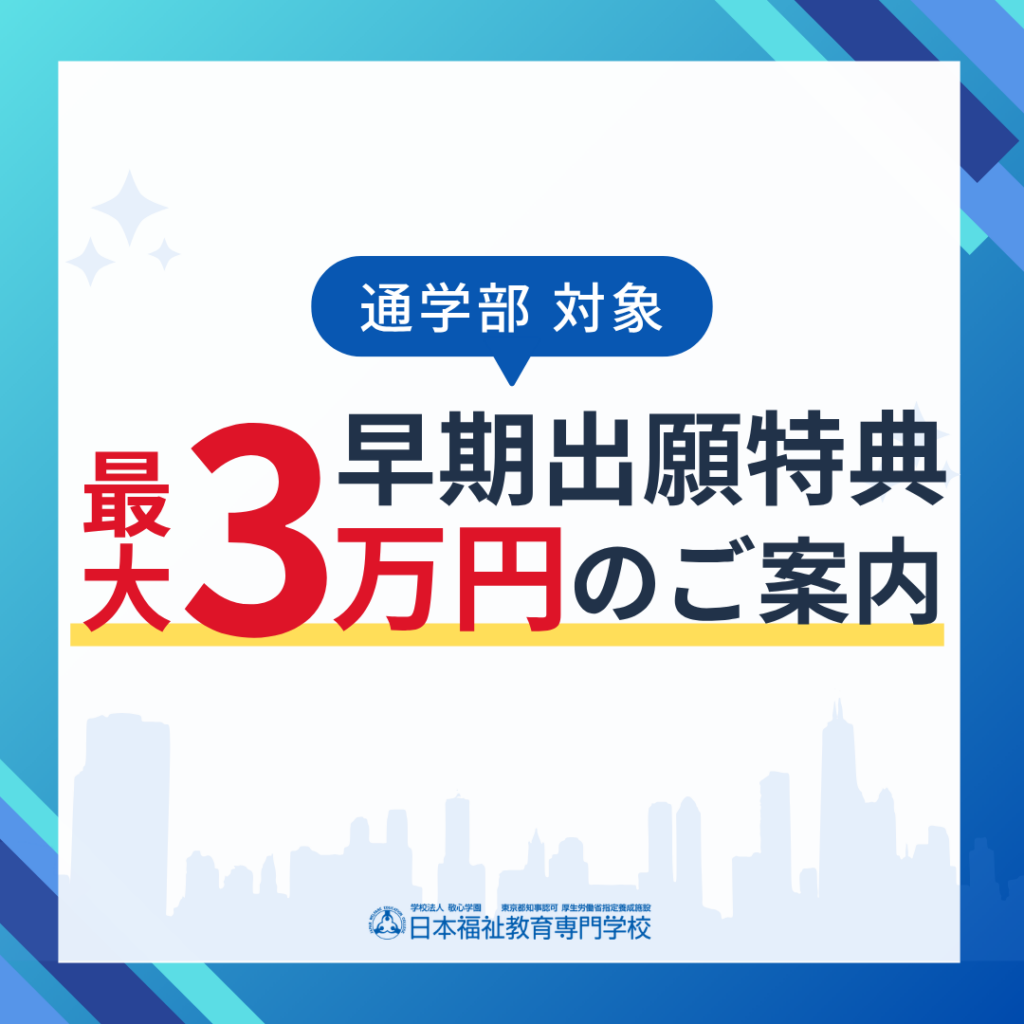 2027年4月入学をご検討の方へ、総合型選抜(AO入試)・施設長推薦選抜における「早期出願特典」のご案内です。