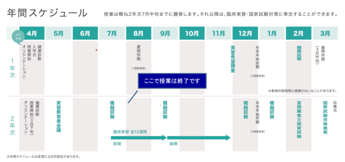 ・2年次7月までに座学を終え、実習や国家試験対策に集中できる