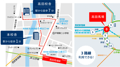 通学する本校舎は、高田馬場駅から徒歩1分と便利なアクセス!