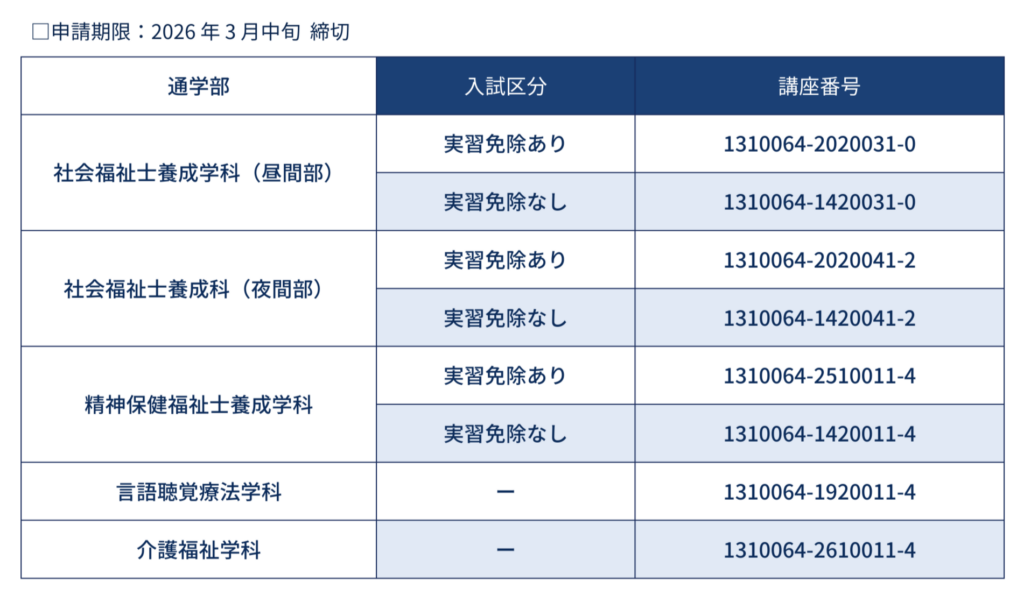 ※通信課程の指定番号につきましては下記リンクをご参照ください。
