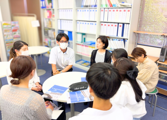当日は、我妻さんとその上司の方、参加した在校生たちが輪になって語り合う、あたたかな雰囲気の座談会となりました。