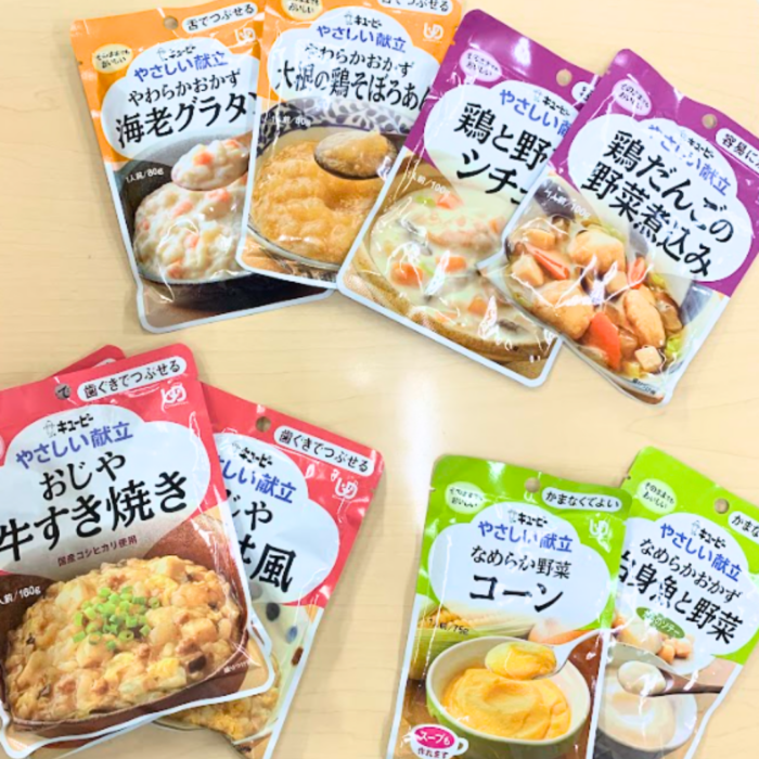 このシリーズは、*「ユニバーサルデザインフード」として、かむ力・飲み込む力に応じて選べる4段階のやわらかさが用意されており、高齢者だけでなく、体調不良時や災害時の備蓄など、幅広いニーズに対応できる食事です。