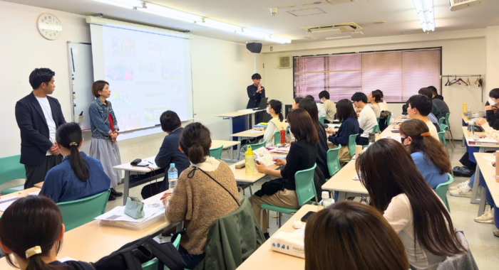 この日の講義では、卒業生であり、現在「こどものうち八栄寮」で活躍されているお二人を講師としてお招きしました。