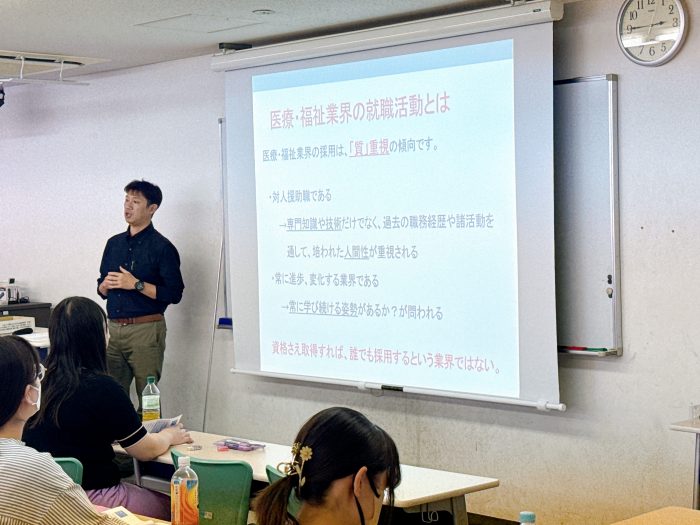 今回は社会福祉士養成学科で行われた就職ガイダンスの様子をレポートします。