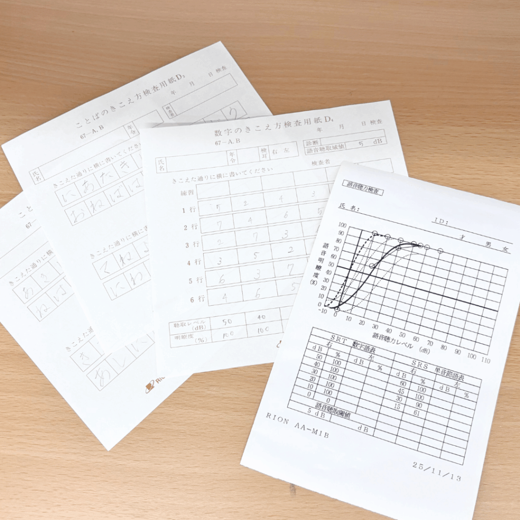 検査前に説明を受け、数字とことばの聴こえ方用紙を手にスタート。