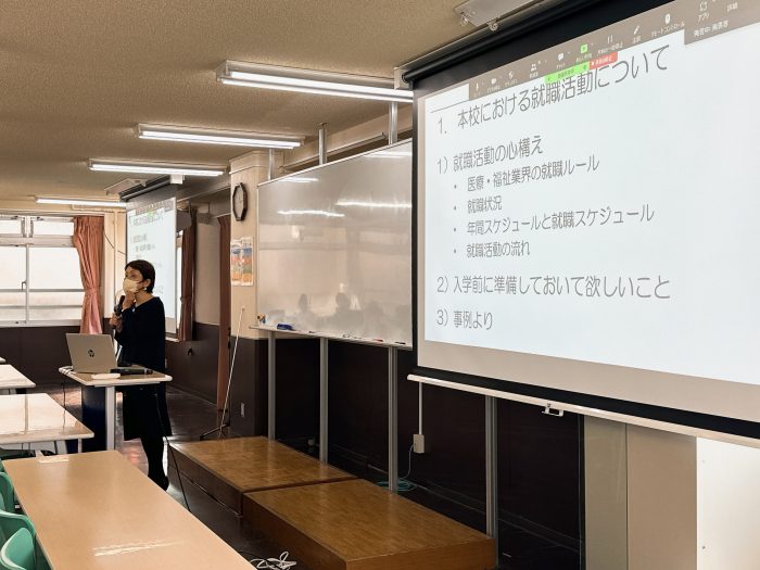 続いて学科長より、就職活動のお話や国家試験の問題についてご講義いただきました。