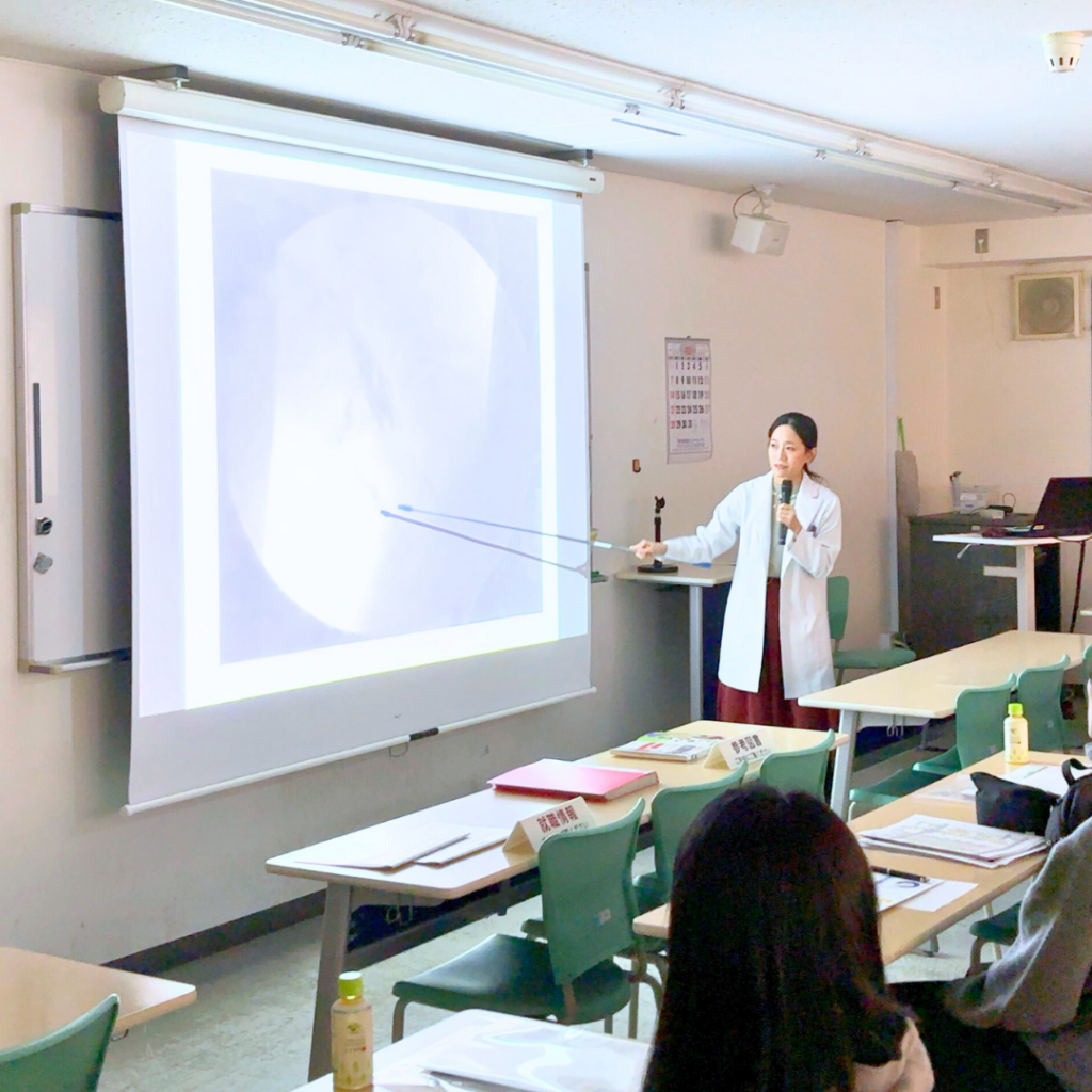 イベント前半では、言語聴覚士(ST)の専門分野の一つである「嚥下(のみ込み)」についてのミニ講義を実施しました。